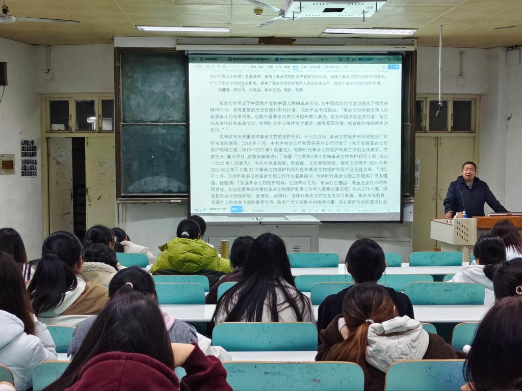 11月14日晚,张金林博士在人文楼609教室为公司员工作了题为“新时代河南省革命文物的保护利用”的专题讲座,公司2024级员工到场听讲。