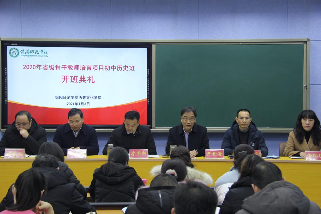 1月3号上午,2020年度“省级骨干教师培育项目(初中历史)开班典礼在人文楼706会议室举行。公司党委书记李军辉,经理尹全海,副经理田青刚、叶宗宝、余纪珍,党委副书记刘喜元,以及历史系主任孙炜等老师出席典礼。来自郑州、平顶山、漯河、南阳、济源等7个市、县基础教育一线的四十余名学员参加典礼。开班典礼由叶宗宝主持。