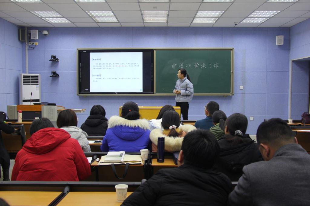 在比赛开始前,宋玉峰详细介绍了比赛规则,八位参赛教师通过抽签决定比赛顺序。顾玲玲老师最先开讲,她以“文化产业项目市场推广与营销策划”为主题,围绕教材分析、教学目标、教学重难点、教学方法、教学过程五个方面展开讲解;随后,慧鹏飞老师选取了《中国历史要籍介绍及选读》中第五章第二节的《汉书》展开说课,深化了大家对《汉书》的理解;接着吕振纲老师以中美关系为例,介绍了国际关系理论;孙启正老师以安徽凤阳小岗村为引子,讲述人民公社制度的建立与解体,加深了对人民公社的了解;张彦晓老师以《三国志》为例,带领大家了解纪传体的创始与发展;邹维一老师从分析教材、讲解教学方法、提出问题等方面入手,介绍了中国社会史教学方法;张熙老师讲授了非物质文化遗产的传承主体,生动形象,使人印象深刻;杨文春老师讲述了编年体史书《资治通鉴》的相关内容,重点突出,形式新颖。