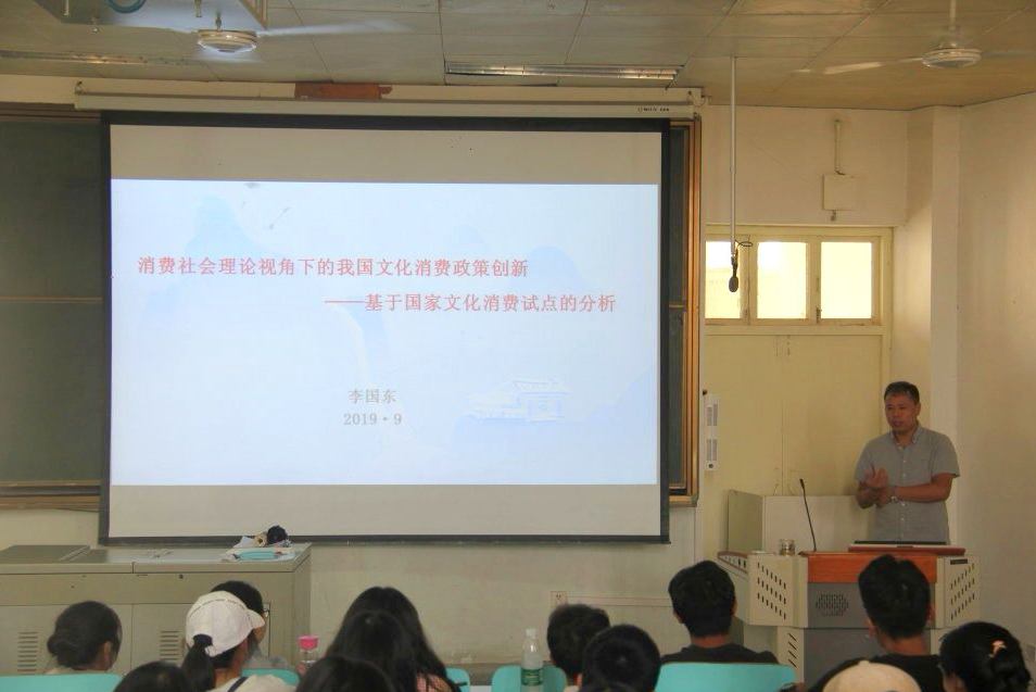 9月27日下午,公司在人文楼609教室开展了本年度第五场人文视野讲座,讲座主题为“消费社会理论视角下的我国文化消费政策创新---基于国家文化消费试点的分析”,主讲人为公司教师李国东博士。2017、2018级文化产业管理专业全体员工到场听讲。