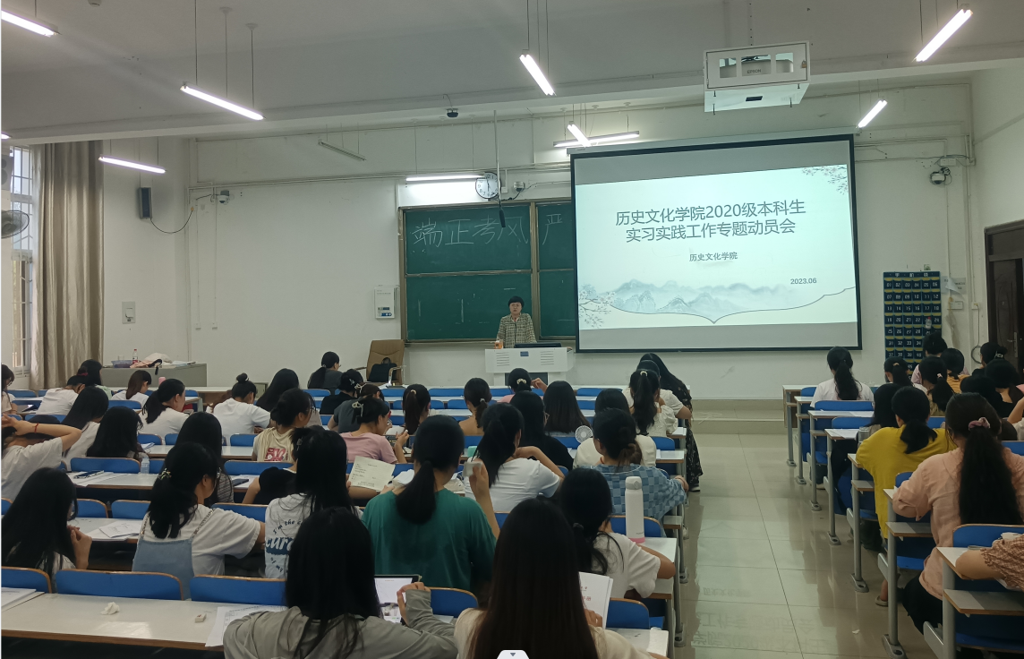 6月21日下午,公司2020级本科生实习实践专题动员会在社科楼212进行,教学副经理孙炜、教学秘书宋玉峰、及2020级历史学班全体同学、文化产业管理班班委代表参加了动员会。