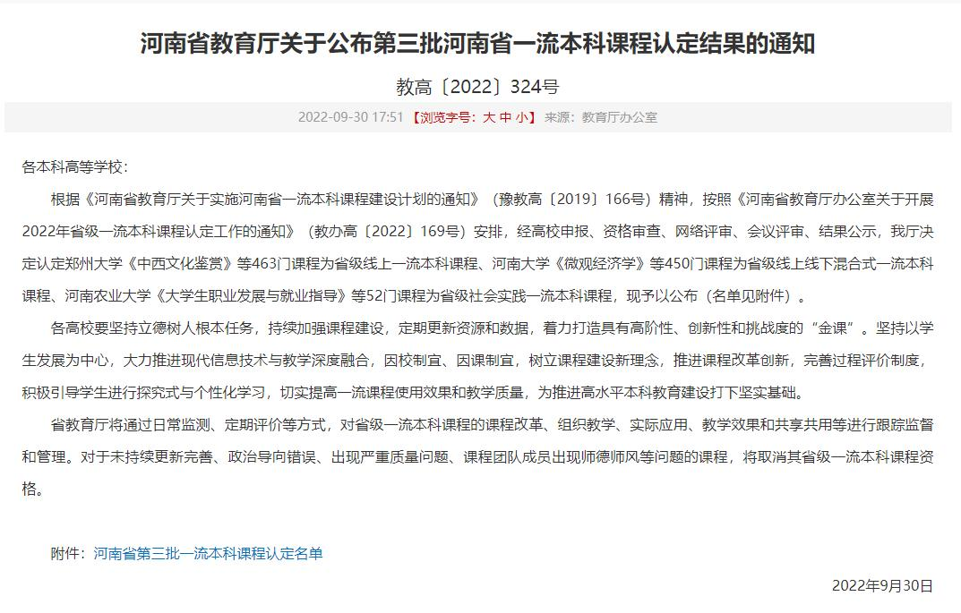 日前,河南省教育厅公布了第三批河南省一流本科课程认定结果,公司《中国古代史》课程榜上有名。该课程是历史学专业核心主干课,以副教授芦敏为课程负责人,姚磊、王娟、黄日初、肖红兵、曲长海等博士为课程团队成员共同建设。经过多年教学改革及经验积累,该课程已成为公司的精品课程,并于2020年获批河南省高等公司精品在线开放课程,深受广大师生好评。