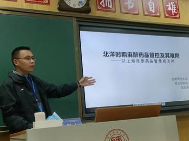 会议期间,公司叶宗宝教授指导的2022级中国史研究生井洋、2023级中国史研究生梁宏涛做了论文报告。其中,井洋以《从1931年武汉大水医疗救济看防疫组织协调关系》为题,探讨了1931年江淮大水发生后武汉地区各救济组织如何开展防疫工作,各组织间如何协调运转等问题;梁宏涛以《北洋时期麻醉药品管控及其难局——以上海违禁药品管理局为例》为题,分析了北洋时期政府对麻醉药品管控的初步尝试与管控困境,两位同学的报告得到了与会学者的热烈回应。