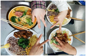 3.“共进午餐”假日午餐会。2022年4月5日中午,伟德国际1949官网在校研究生和老师共同开展了假日午餐聚会,师生一同在食堂品尝了各种校园美食,并进行了愉快的交流。老师们就员工的心理健康、家庭情况做了悉心了解及关注。员工们就学业中遇到的问题咨询老师建议,餐会气氛和谐,增进了师生情感。