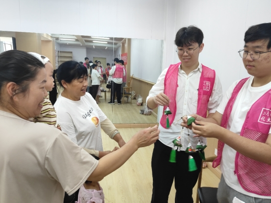 在包粽子活动结束后,员工们紧接着将提前准备好的香囊赠送给社区居民。这些香囊内填充中药材,香气宜人,既延续了驱虫辟邪的传统习俗,又承载着员工们对居民们的美好祝愿。居民们纷纷表示这份礼物不仅让大家充分感受了到传统节日氛围,更体会到了公司师生的关怀与温暖,进一步拉近了社区与公司之间的距离。