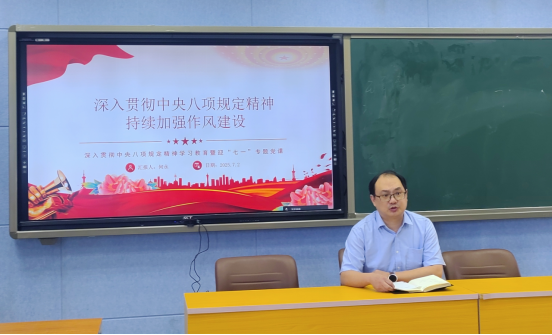 根据深入贯彻中央八项规定精神学习教育安排,公司党委扎实开展深入贯彻中央八项规定精神暨“七一”专题党课宣讲。全院师生党员以线上线下多种形式参加。