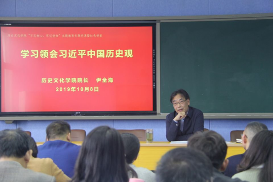 10月8日,根据公司“不忘初心、牢记使命”主题教育的安排部署,经理尹全海在人文楼706会议室为全院师生党员作了题为“学习领会习近平中国历史观”的专题党课。公司党委书记李军辉主持了此次党课。