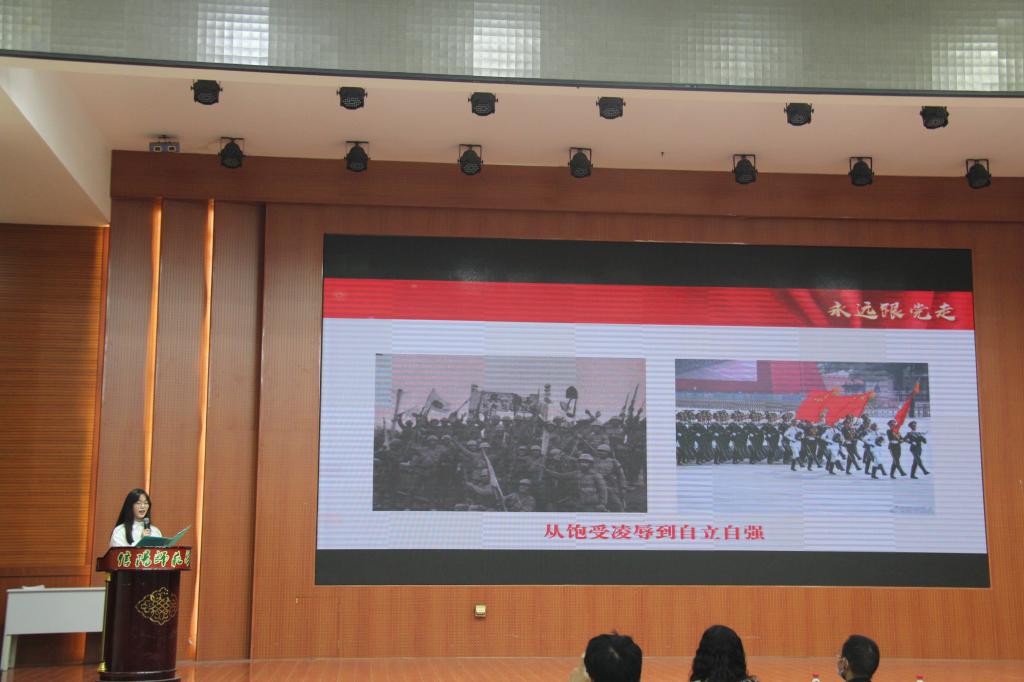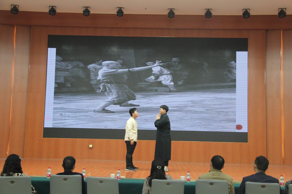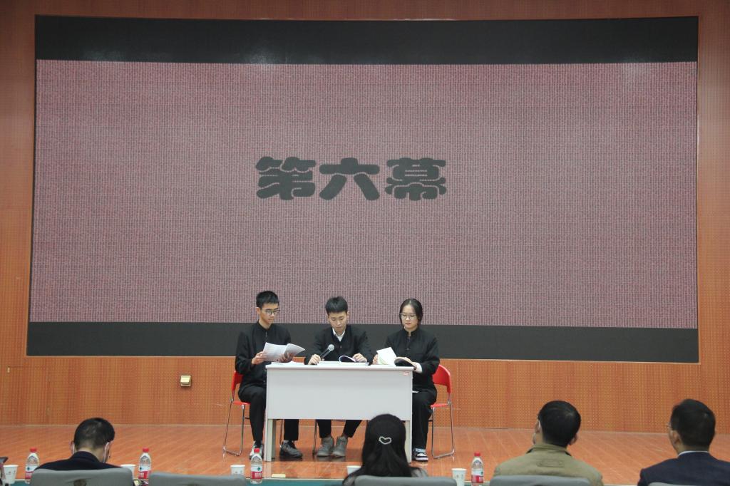 本次活动在宋佳霖同学以说唱方式带来的歌曲《红色》中拉开序幕。接着,万斌斌、王麓涵等同学表演的《许世友四跪慈母》讲述了许世友将军恪守“活着尽忠,死后尽孝”的人生信条,在母亲许李氏的教导下,把毕生精力贡献给无产阶级革命事业,立下赫赫战功的故事。随后,由黄容卿、郭子璇等同学表演的《延乔岁月》讲述了陈独秀的儿子陈延年和陈乔年由最初不理解父亲到与父亲走上相同革命道路,成为年轻共产党员的故事。最后,由孙小宝、王心宇等同学带来的短剧《传奇英雄许世友》从另一个视角讲述了家境贫寒的许世友凭借着敢打敢拼、视死如归的精神,从普通的革命战士成长为一代传奇将军的故事。短剧展演活动中,向新民和王希腊同学分别介绍了家乡进入新时代的变化,让同学们深刻感受到党领导下家乡的发展与进步。
