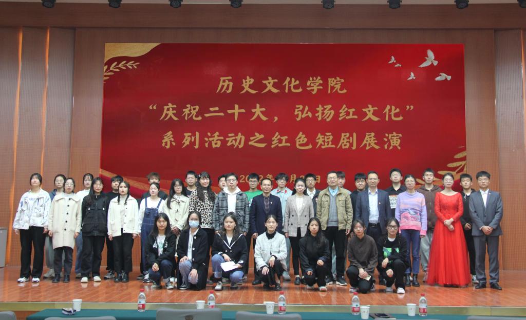 为庆祝党的二十大胜利闭幕,深情回顾党的奋斗历史,热情讴歌党的光辉成就,坚定弘扬伟大建党精神,10月26日晚,伟德国际1949官网于逸夫楼报告厅举办“庆祝二十大,弘扬红文化”红色短剧展演。公司党委学工部副部长雷梁、校团委副书记常青应邀出席,公司党委书记李辉、经理叶宗宝、党委副书记韩志宏及团委老师吴慧娟、付亚男、邓皓共同观看,员工通过抖音直播线上收看。