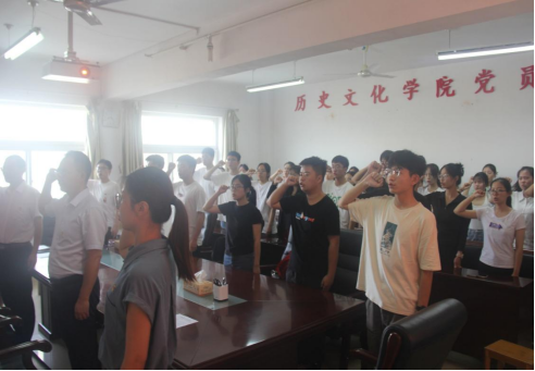 会议伊始,伴随着激昂的国际歌旋律,全体人员共同演唱。接着,付亚男宣读吴依冉等21位新发展预备党员名单;吴慧娟宣读张梦璐等43位按期转正党员名单。随后,韩志宏带领全体与会党员面对鲜红的党旗,举起右拳,庄严宣誓。