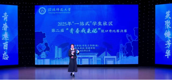 12月11日,伟德国际1949官网第二届“青春我来说”脱口秀决赛圆满落幕。公司学子李园园凭借原创作品《一个历史牲的“误闯天家”》脱颖而出,荣获“最具深度奖”,她以独特的历史视角与幽默表达,为现场观众带来了一场兼具思想性与观赏性的精彩表演。