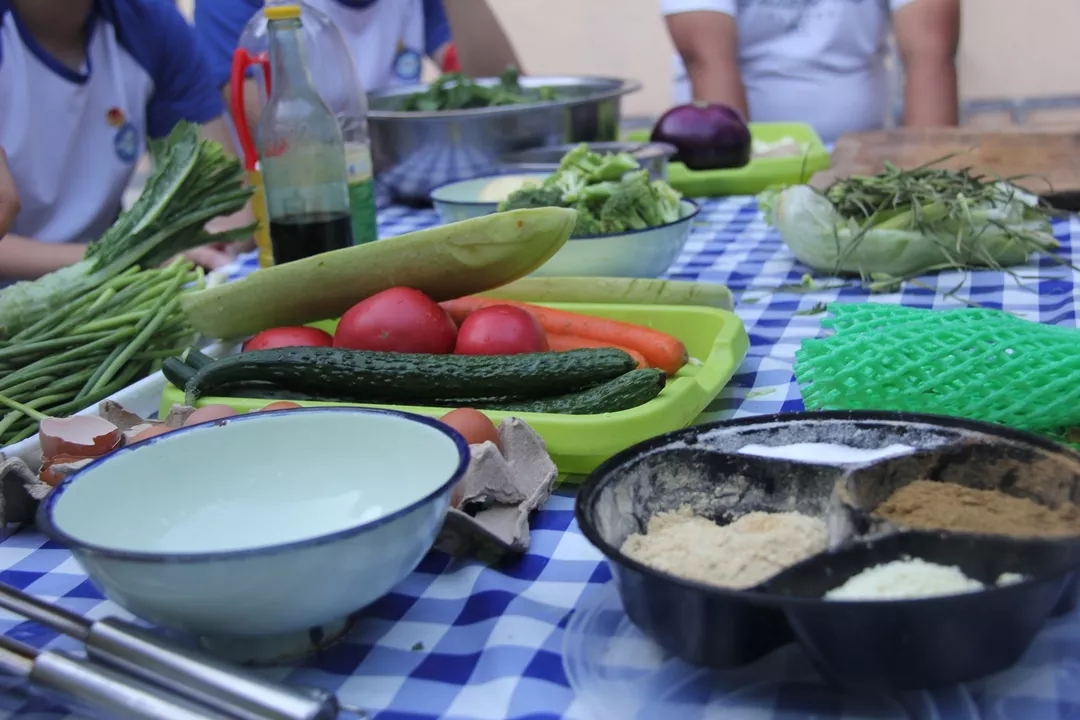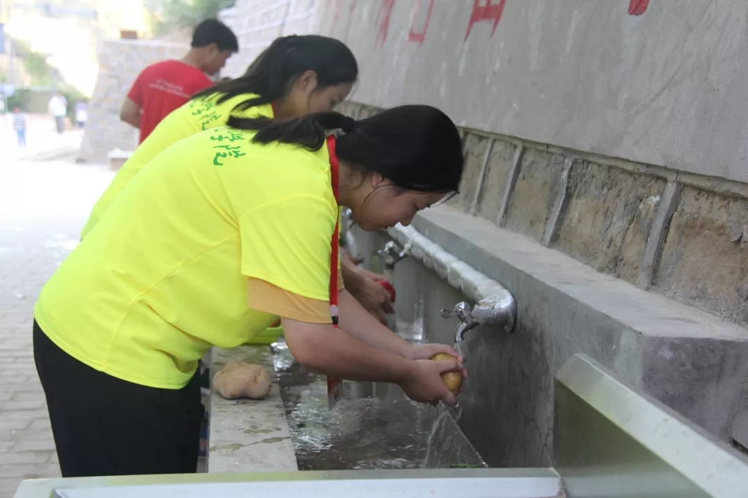 在结束了一天的参观学习回到基地后,基地老师为我们提供食材与锅灶,我们第一次以班级为单位自己动手进行晚餐的制作,大家分工协作,齐心协力完成了这次晚餐,这让我们深刻体会到延安时期的自力更生、艰苦奋斗的创业精神。