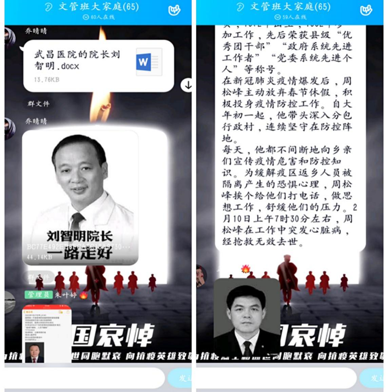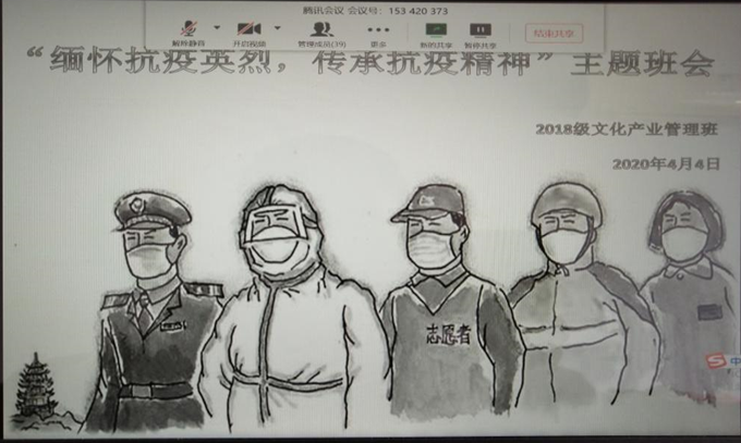 为表达对抗击新冠肺炎疫情牺牲的烈士和逝世同胞的深切哀悼,4月4日清明节上午,公司2018级文化产业管理班以“缅怀抗疫英烈,传承抗疫精神”为主题举行线上主题班会。公司党委副书记、班主任刘喜元与全班同学一起参加了主题班会。