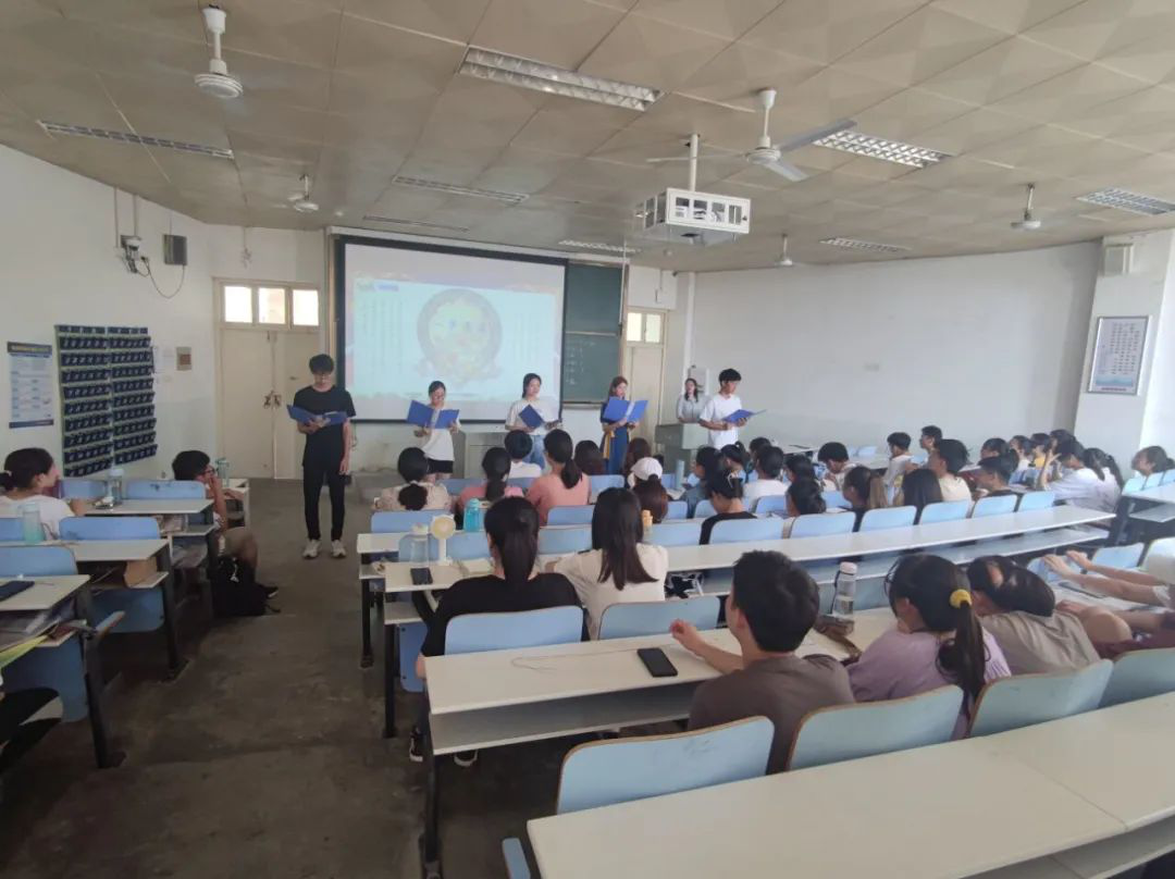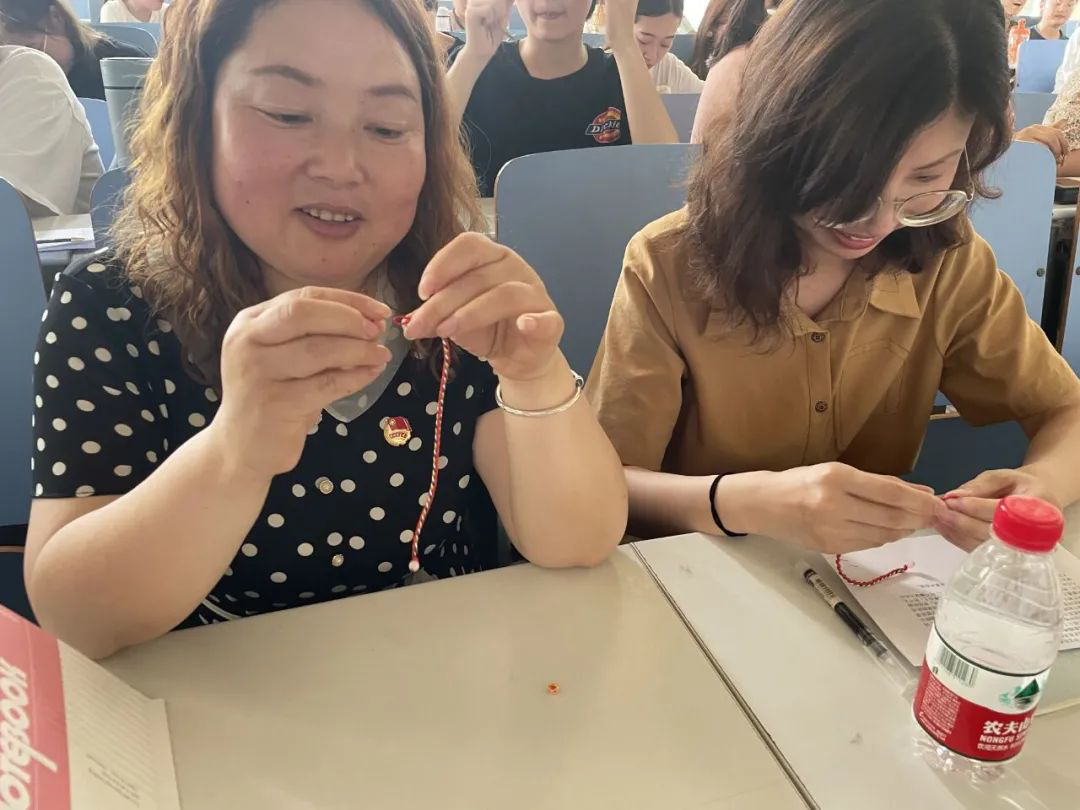 主题团日活动首先通过一段短视频介绍端午节的历史渊源,随后刘家祺和胡灿同学通过讲故事的方式,分别讲述了端午节喝雄黄酒的传说和关于曹娥救父的故事,诙谐幽默地向同学们介绍了端午节的习俗和由来。采用分小组参与端午知识竞答,累计分数最高小组将获得一份纪念品,各小组你追我赶,现场氛围热烈。梁银轲、刘鹏雪、郭程扬、刘飞扬、王跃东五位同学朗诵《一梦逍遥》,展示了代表时代精神、百姓情结和民族文化的屈原屈大夫。朗诵之后通过传统民间助兴小游戏击鼓传花,分享端午小风俗,让同学们在欢声笑语中学习传统文化。五彩绳源于我国古代的五行观念演变而来,在端午节佩戴五色丝线以辟邪,兼有祈福纳吉的美好寓意,老师和同学们亲手编织属于自己的彩绳,作为送给自己端午节的第一份礼物。最后,在场人员合唱《离骚》,在欢快轻松的氛围里结束了本次活动。