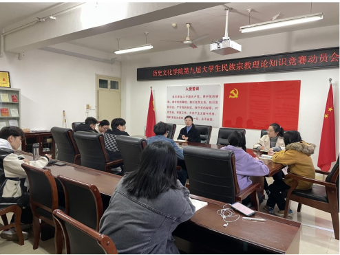 为加强中国特色社会主义民族宗教理论、党的民族宗教政策和国家有关法律法规的宣传教育,有效组织公司员工参加全省高校第九届老员工中国特色社会主义民族宗教理论知识竞赛,11月16日,公司于人文楼805会议室召开宗教知识竞赛员工干部动员大会。团委老师付亚男及各班班委参与会议。