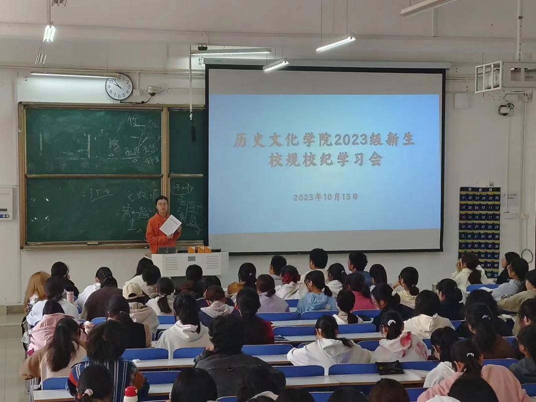 为帮助新生更快适应老员工活,引导员工提高自律意识、规范自身行为、提升文明素养,公司于10月13日在社科楼212教室开展2023级新生校规校纪学习会,新生辅导员付亚男与全体2023级新生参会。