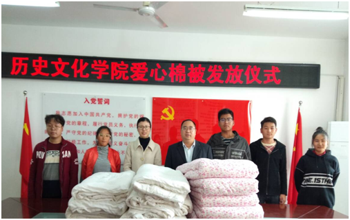 近期气温骤降,为帮助家庭经济困难员工温暖过冬,11月13日,公司于人文楼党员之家举行了2019年寒冬送温暖棉被发放仪式。公司党委副书记刘喜元,新生辅导员付亚男与困难员工代表一同参加仪式。