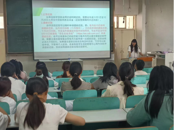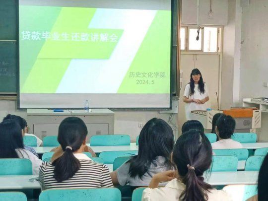 为进一步做好2024届贷款毕业生教育工作,增强员工诚信、感恩意识,5月21日下午,公司在人文楼609召开贷款毕业生还款讲解及诚信教育会,2024届助学贷款毕业生参加,资助专员吴慧娟主持并参与讲解。