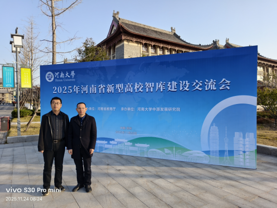 11月24日,2025年河南省新型高校智库建设交流会在河南大学郑州校区召开,经理叶宗宝、副经理李志坚代表公司智库根亲文化与两岸交流研究中心参加交流会。
