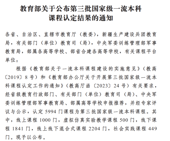 近期,教育部公布了第三批国家级一流本科课程名单。经专家评议与公示,该批次共认定5994门课程为国家级一流本科课程,其中由公司芦敏负责、叶宗宝和姚磊共同参与的《中国古代史I》课程获国家级线上线下混合式一流本科课程认定。