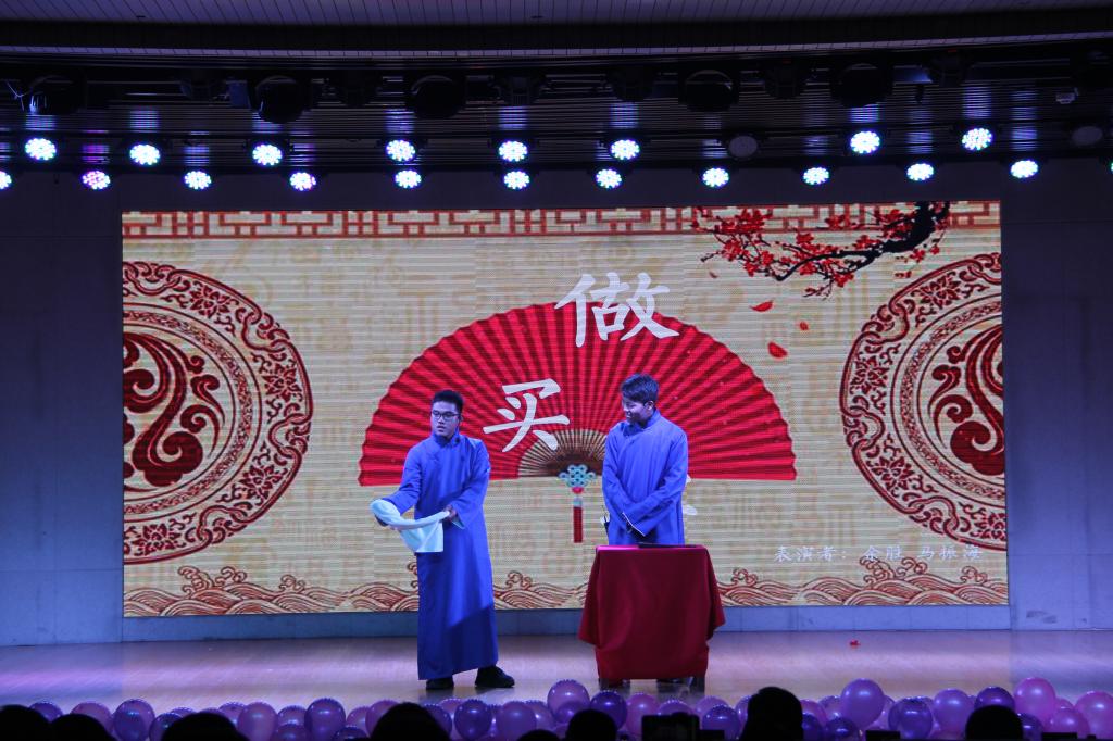 晚会现场,节目精彩纷呈、气氛热烈,处处洋溢着青春与活力。晚会在红火喜庆又不失青春活力的开场舞《好运来》中拉开了帷幕,同学们用动感的舞步点燃了现场氛围。独唱《太阳》歌声嘹亮,宛若天籁。接着,相声表演《做买卖》用诙谐幽默的语言讽刺了当今社会上的无良商家,在表演中与观众积极互动拉近了距离。双人舞《不染》带我们梦回千年,感叹一段才子佳人的唯美爱情故事。随后,小品《财神驾到》新颖独特的剧情在爆笑中充满正能量。诗朗诵《我的祖国》以诗歌赞礼祖国,莘莘学子以深情朗诵彰显爱国之心,高扬青春理想。紧接着,更有歌曲串烧和二胡乐曲为同学们带来了一场视听盛宴。琴声淌过,创意节目《大学》以大学之道,道出了师院厚德崇实善学敏行的珍贵校训。在师生同乐环节,老师们的合唱《明天会更好》博得了现场的阵阵喝彩,欢呼声此起彼伏。随后,公司员工会18级和19级秘书处带来的舞曲串烧再次点燃了观众热情,将晚会气氛推向高潮。最后,伴随着《最美的期待》的优美旋律,晚会在温暖与感动中落下帷幕。此外,本次晚会开设微信抽奖环节,同学们积极参与互动,通过微信表达心声,传递祝福,分享欢乐。