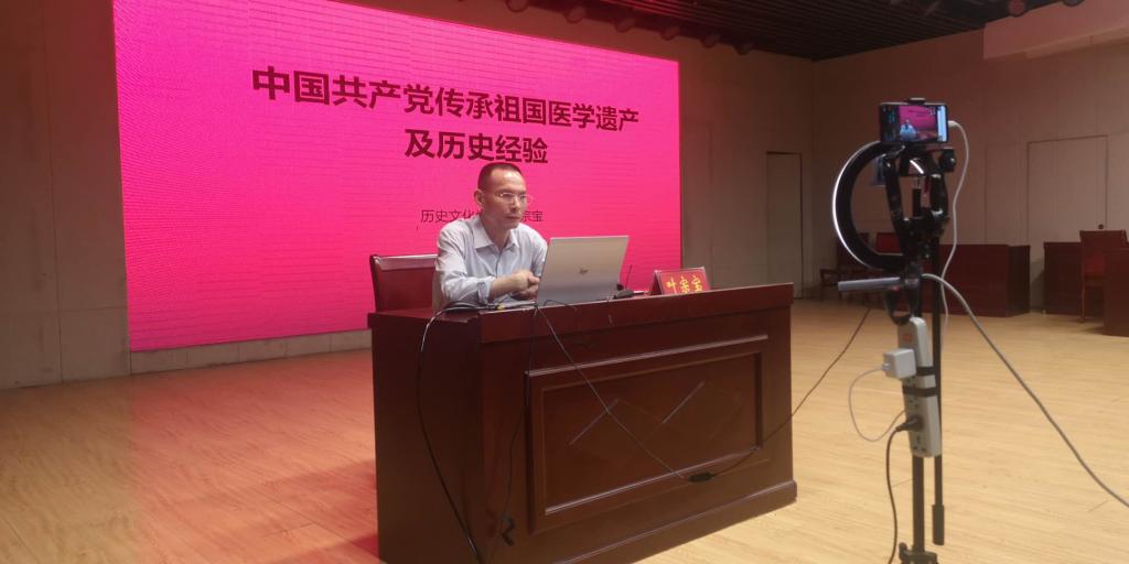5月21日下午,应共青团信阳师范公司委员会邀请,副经理叶宗宝在理科楼报告厅作“中国共产党传承祖国医学遗产及历史经验”的主题报告,报告采取线上直播方式,来自全校20多个院系的600多名青年学子一起聆听了报告。
