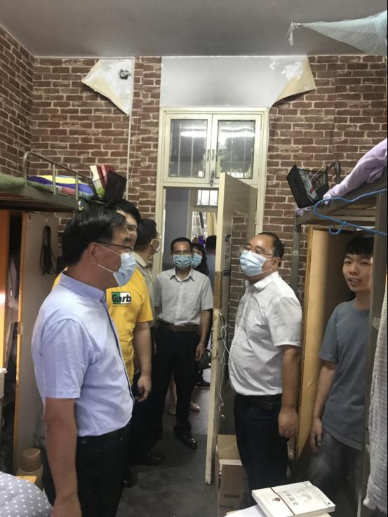 9月5日,公司新学期员工返校复学第一天,公司领导班子带队辅导员队伍深入员工宿舍看望首批返校复学的员工。