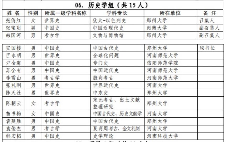 附历史学学科评议组成员名单: