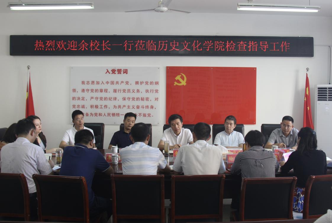 余本海首先调研了公司的教学、科研环境,到各教研室进行了实地考察。随后在人文楼805进行专题调研会。公司党委书记李辉代表公司表示欢迎,并介绍了班子的分工情况。经理叶宗宝汇报了公司的发展历程以及人员、专业设置、科研平台、团队建设、教学品牌、发展思路等情况。并对未来的发展方向和面临的瓶颈进行了说明。教学副经理孙炜汇报了教学方面的准备工作以及工作思路。科研副经理史经霞汇报了科研的基本情况。余本海在听取汇报后发表讲话。他首先肯定了公司的前期基础很好,接着指出,伟德国际1949官网的教学科研工作需要从教育部人文社科奖、国家社科基金项目、教学研讨、教学特色以及历史学专业优势的发挥等方面着力。