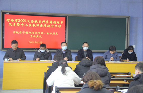 12月29日上午,2021省级骨干教师培训项目初中历史班,在信阳师范公司伟德国际1949官网顺利开班。公司党委书记李辉,经理叶宗宝,副经理孙炜、史经霞、李志坚及张乐锋、邹维一、卞卡等老师出席开班典礼。来自郑州市、漯河市、南阳市、平顶山市、驻马店市等我省多个县市区的基础教育一线教师欢聚一堂,共同开启珍贵的培训交流时光。开班典礼由教学副经理孙炜主持。