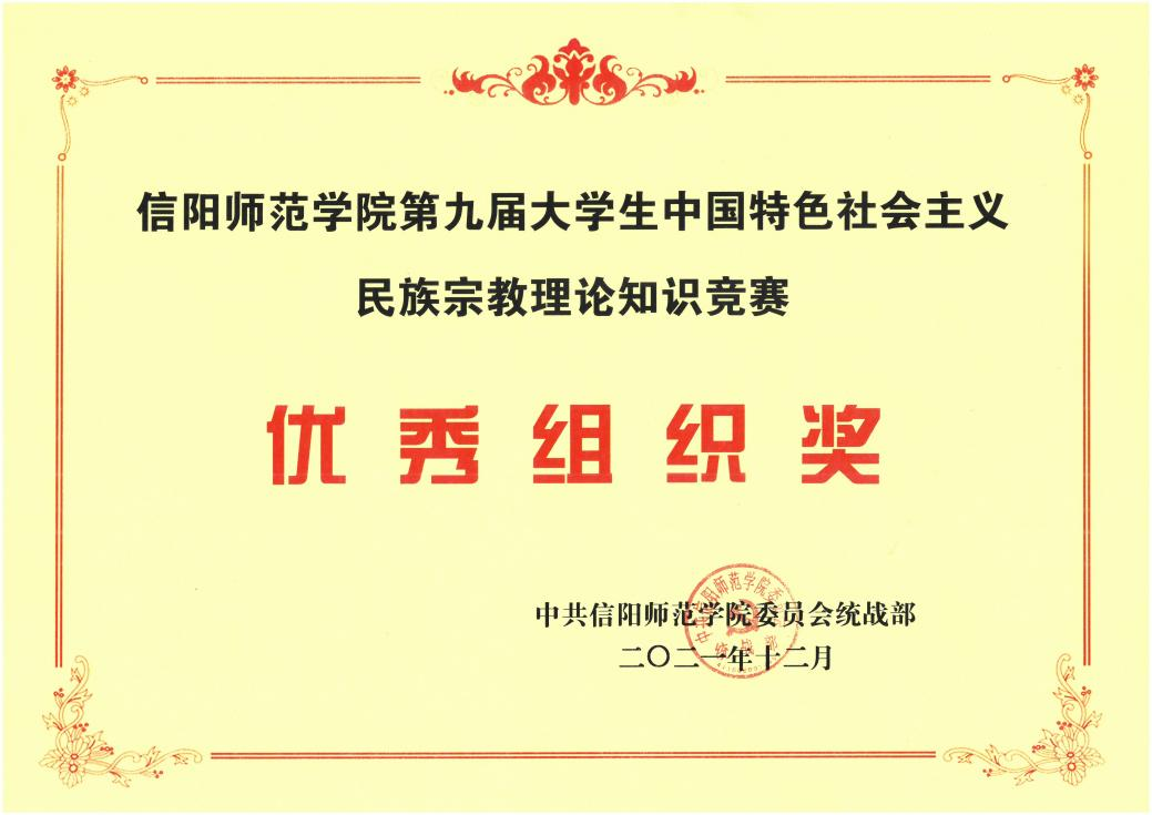 根据信阳师范公司党委统战部统一部署要求,公司党委认真组织员工积极参加第九届老员工中国特色社会主义民族宗教理论知识竞赛线上答题活动,公司员工在比赛中成绩优异,高小力同学获省级参与奖,程心如等16名同学获校级参与奖,公司荣获优秀组织奖。