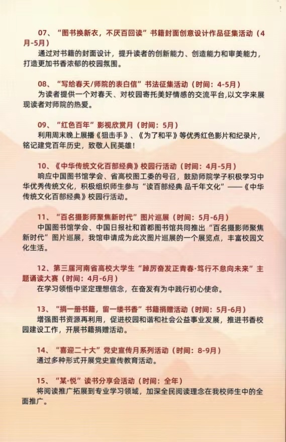 2021年度,伟德国际1949官网读者借书量和人均借阅册数位居全校第二,2020级历史学专业员工雷帅位居全校年度外借图书量第一,借阅册数达118本。伟德国际1949官网荣获2021年书香校园建设“十佳单位”。