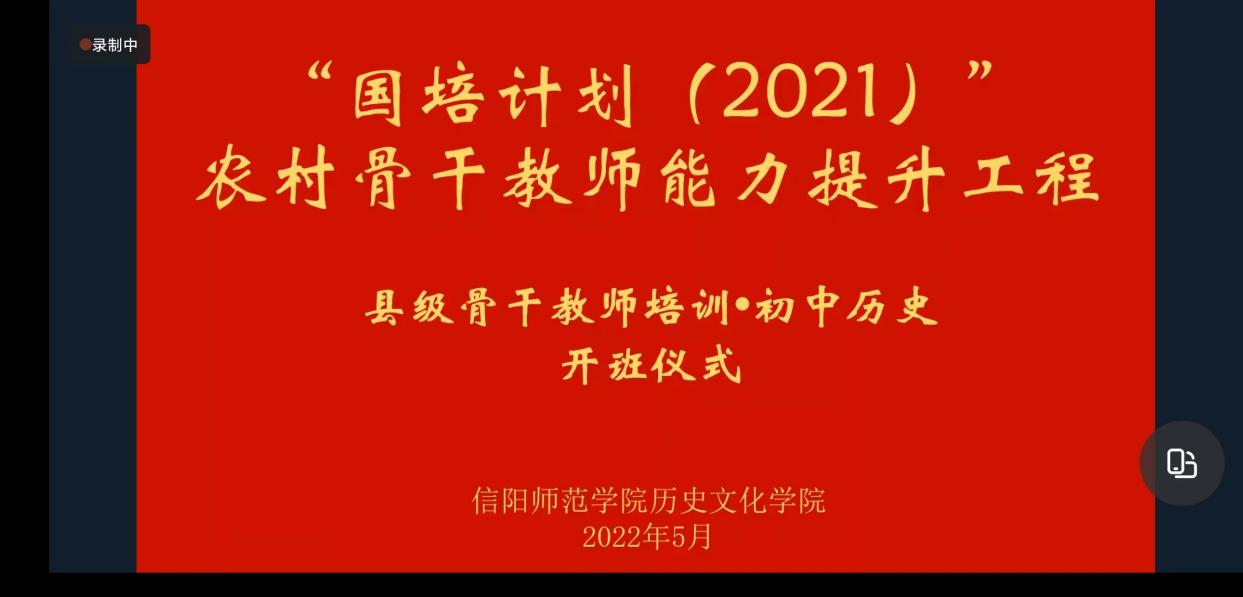2022年5月20日上午,“国培计划(2021)”——河南省农村骨干教师能力提升项目(初中历史县级骨干教师)培训开班仪式在钉钉平台举行。公司党委书记李辉、副经理孙炜,项目组吴天钧、邹维一、惠鹏飞老师以及来自全省的40余名初中骨干教师参加。会议由历史学系主任张乐锋老师主持。
