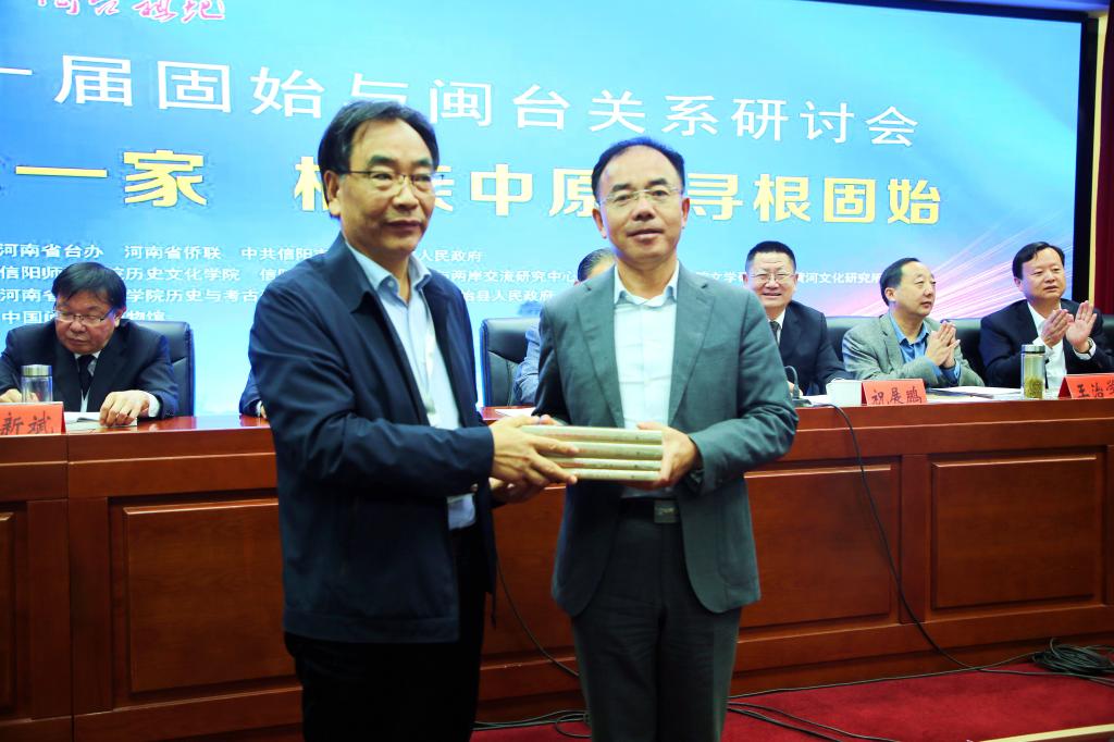 副董事长陈登报、社科处长李军辉应邀参加开幕式,陈登报代表承办方致辞,他说:信阳师范公司,因1982年成立的“台湾同胞祖根问题研究会”秘书处所在地,而结缘于台湾同胞祖根渊源研究,并因此成为全国最早开展台湾姓氏祖根渊源研究的地方高校。2008年首届“固始与闽台渊源关系研讨会”暨2009年首届“中国固始根亲文化节”在固始先后成功举办时,信阳师范公司均为应邀协办单位和积极参与者。“固始与闽台渊源关系研讨会”和“中原固始根亲文化节”至今连续举办十届,信阳师范公司从未缺席。
