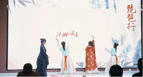 在才艺展示阶段,公司学子充分发挥历史专业特色,融会贯通,向大家展示了“琵琶行歌舞剧”,富有古典韵味的视频背景,华美的古代服饰都展现了他们的良好风貌,“一舞动京城”,表演结束后,现场被一片连绵不绝的掌声所回响,获得一致赞许。